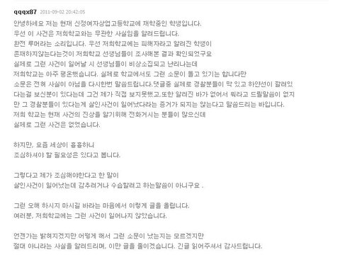 누가 죽었냐니까 신X여상 학생이 죽었다고 함.