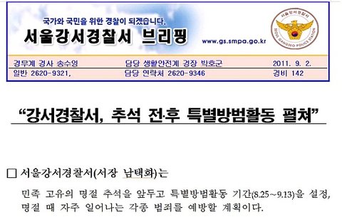 추석전후 특별방범활동 관련 보도자료및 한글파일 올라와있음.