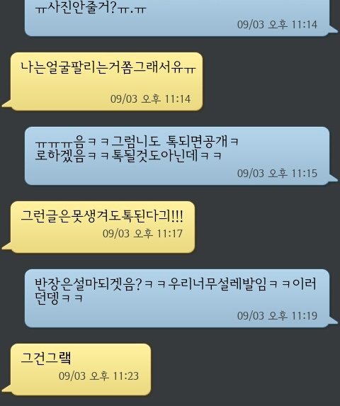 진짜 죄송해요ㅠㅠㅋㅋㅋ따지고 보니 전부 톡되면 얼굴공개네요ㅠㅠ