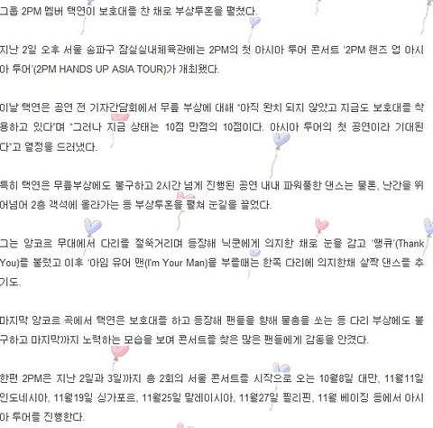 제왑네이션일본콘에서 택연군이 다리부상을 입게 되었거든요 ㅠㅠ
