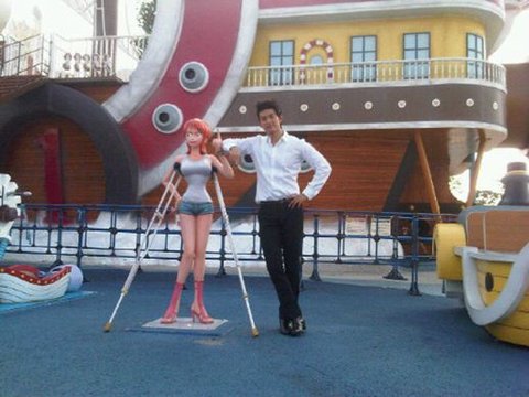 팬들이 놀랬던 목발사진.... 그외에도 휠채어라던지 계속 보이며 팬들의 걱정이 이만저만..