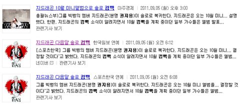 지디 컴백으로 가요계가 술렁술렁거린다네요