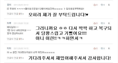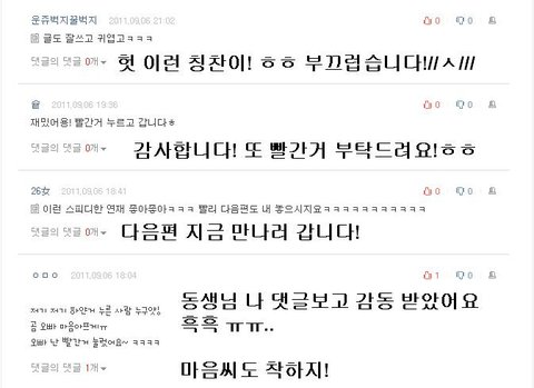 그리고 저에게 힘들주는 깨알같은 댓글들!