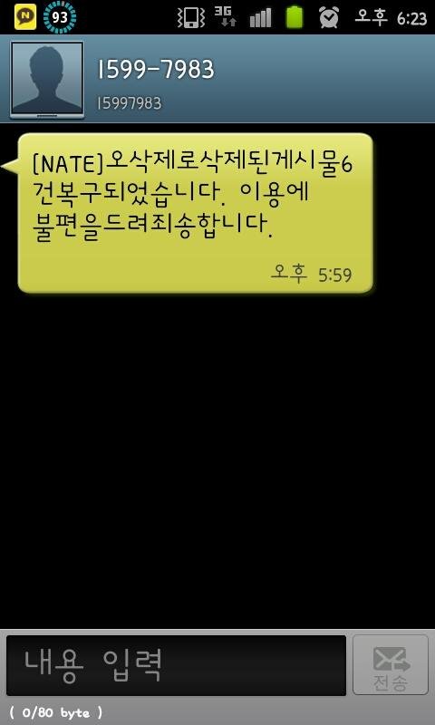네이트 측에서 문자가 한통 왔어요.