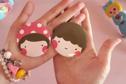 소년소녀얼굴의 뱃지에용 ㅋㅋ 가방같은데 달고다니면 괜츈할