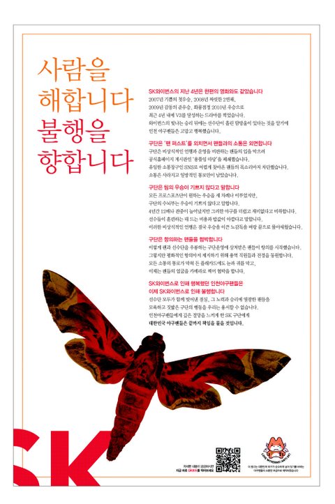 와이번스팬들의 진심이 남긴 눈물어린 호소를 담은 신문광고