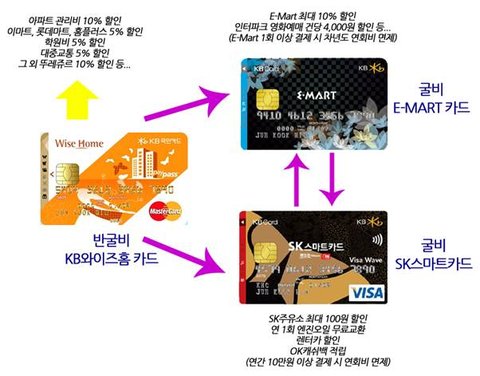장 볼때는 E마트 카드를, 그리고 주유할때는 SK 스마트 KB국민카드를 사용하고 있습니다.