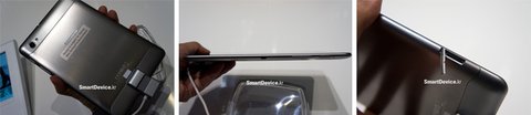 양옆 버튼의 위치나 아래쪽 스피커와 탭 단자 등 전체적인 위치는 갤럭시탭과 거의 비슷하지만, 버튼의 모양을 세심하게 다듬었고 뒤쪽을 알루미늄으로 처리해 한결 고급스러워졌다. 300만 화소 카메라와 LED도 은빛 뒷판과 잘 어울린다. 조금 특이한 것은 마이크로 SD 카드 슬롯과 적외선 센서가 있는 점이다. 적외선 센서를 이용해 TV를 제어할 수 있는 데 이 기능을 활용하기 위한 애플리케이션은 기본으로 들어 있다.