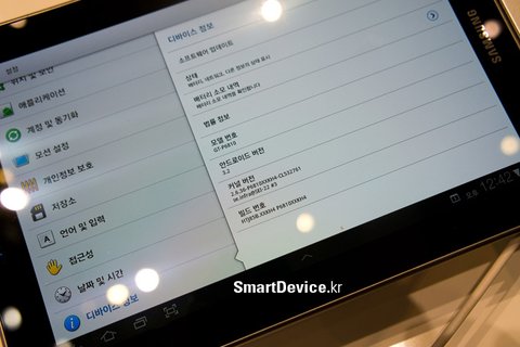 언팩 행사를 마치자마자 곧바로 아직 한창 공사를 하고 있던 삼성 부스로 옮겨 갤럭시탭7.7을 직접 봤다. 외형은 종전 갤럭시탭 7인치와 완전히 다른, 오히려 갤럭시탭 8.9나 10.1에 좀더 가깝다. 갤럭시탭10.1의 축소판처럼 보이지만, 오히려 작아진 덕분에 더 알찬 느낌이다. 갤럭시탭7.7도 은빛 테두리를 두르고 있지만, 옆이 둥그런 10.1과 다르게 옆 면을 비스듬히 깎았다.