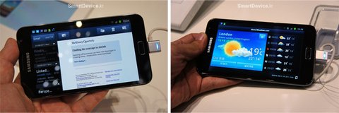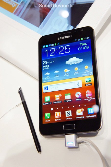그리고 해상도도 주목해야 한다. 대한민국에도 이미 5인치 급의 화면을 가진 스마트폰이 있었지만 해상도는 800x480 수준이어서 오히려 기존 스마트폰보다 글자나 이미지가 거칠게 보이는 부작용도 있었다. 그러나 1280x800이라는 태블릿 수준의 해상도를 채용한 갤럭시 노트의 디스플레이는 정말 부드럽게 보인다.