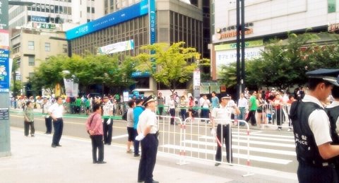 마라톤 준비 중이라 차들 못 다니게 통재 중이였음