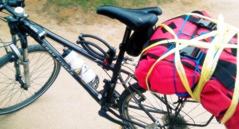짐받이에 묶었는데 나중에 짐받이가 뒤로 휘었음 ㅋㅋㅋ