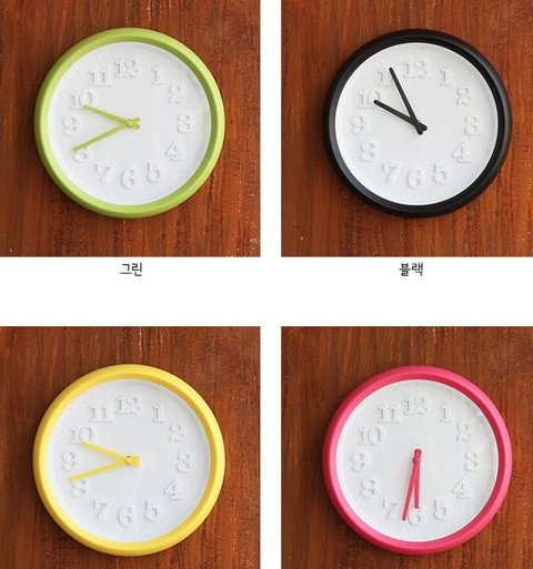 화이트바탕에 색색별로 뽀인트를준 벽시계임니당+.=