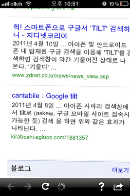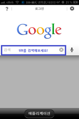 스마트폰으로 구글에서 tilt(한국어로는 '기울이다'라는 뜻)라고 쳐보니까