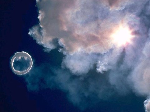 이구름은 강한 압축공기로 인해 수증기가 응축되서 만들어짐.