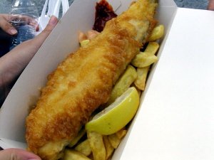 안그래도 샌드위치를 먹어서 배부른데 맛만 보려했던 피쉬엔칩이 너무양이 많아서