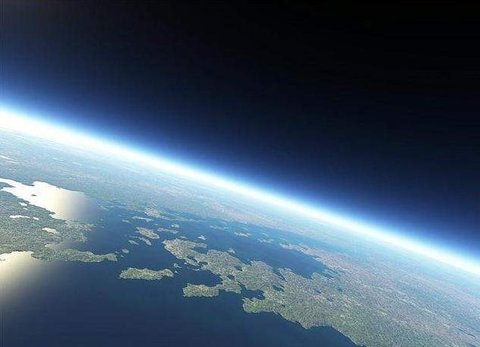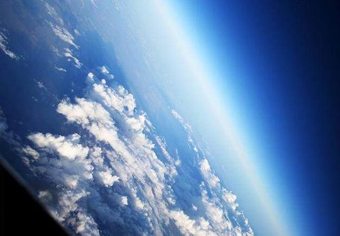 탐사선에서 바라보는 지구의 푸른빛 오로라.