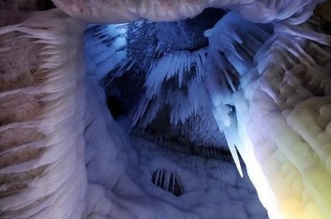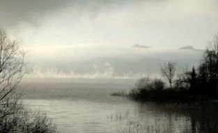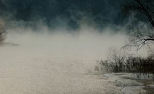 물안개가 추운 날씨로 인해 눈이 되어 내림