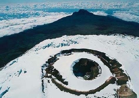 위에서 본 아프리카 킬리만자로 산의 분화구 모습