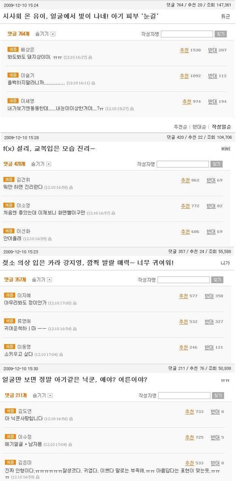 근데 글쓴아, 현아보고 대놓고 네이트 공식 창녀라고 해놓는건 너무한거 아닌가? 교묘한 안티인가 ----------------------------------------- 베플이네요 죄송한데요, 전 현아 창녀 드립 댓글에 항상 반대만 하는 사람이구요 글쓴이가 올린 이 글, 여자로써 기분나쁘지만 크게 틀린말은 아니라고 생각하는 사람입니다 이글 깔생각 없고요, 아무리 퍼왔더라도 저렇게 크게 공식 창녀라고 한 부분을 편집도 안한 그 자체가 거슬린다는 뜻이였는데요 현아 창녀드립에 미친듯이 추천하고 여기서 이러는게 이중성이라는 분, 정말 이해안되네요 제가 창녀 드립에 추천하는 모습을 보셨나요? 그렇다손 치더라도 어떻게 아시죠? 저희 집에 감시카메라라도 다셨나요? + 글쓴이가 나쁘다고 한적은 없는데요^^ 다만 이 글을 퍼오더라도 저렇게 대놓고 공식창녀라고 크게 써져있는부분은 편집이나 삭제를 하면 좋았지 않았을까 하는 것 뿐이에요 저렇게 해놓으면 현아보고 창녀드립치는 여자들의 이중성을 비판하면서도 인정하는 꼴이 되는 것 아닌가요? 공식 창녀라는 부분빼고 그냥 현아기사에 열폭한 부분만 캡쳐해서 올려도 충분했지 않을까요 제 글이 베플된거 보면 이중성이 있긴 있구나, 하는 생각도 듭니다 하지만 전 항상 현아 기사에 창녀라는 말은 너무하다라는 식으로 플 남기는 사람인데 지금 제 베플가지고 이중성이니 하는 것은 아닌 듯 하네요 제가 하고 싶은 얘기는 "글쓴이가 의도한 방향이 아니였더라도 공식창녀라는 단어를 강조하게 된 것이 아닌가" 하는 부분이고요, 일부러 하신 일이 아닌것 알고 있기에 욕하지도, 비난하지도 않았습니다.