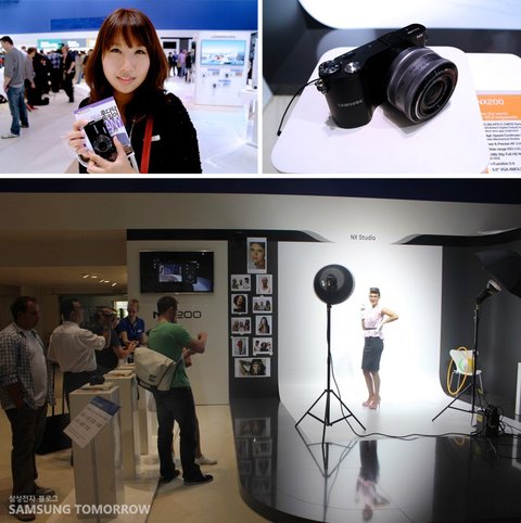 이번에 새롭게 출시된 NX200도 진열되어 있었습니다. 특별한 점은 직접 카메라를 사용하여 스튜디오 환경에서 촬영을 해볼 수 있었죠. 현장에 찍은 사진이 바로 한 쪽 스크린에 올라가면서 NX200가 얼마나 화질이 선명하고 깨끗한지 바로바로 확인할 수 있었습니다.