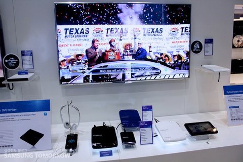 CD-ROM과 같이 생긴 이 멋진 디자인의 드라이브는 allshare 혹은 와이파이를 통해, 정보나 멀티미디어를 공유해 사용할 수 있어요. 한마디로 거실에 이 허브 하나만 있으면 컴퓨터, 스마트폰, 태블릿PC, 스마트TV 등 여러 디바이스가 하나의 콘텐츠를 공유할 수 있다는 말씀! 무선 공유기까지 된다니 일석삼조?