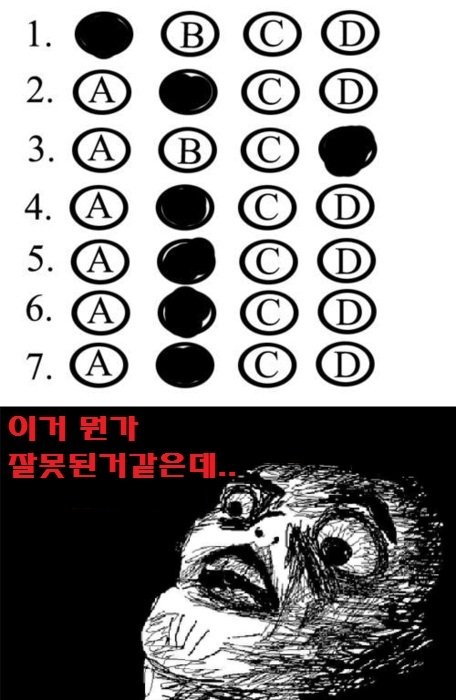 OMR카드 마킹.(찍은게 아니라 풀었을때 저렇게 마킹되면 드는생각입니다.ㅎㅎㅎ)