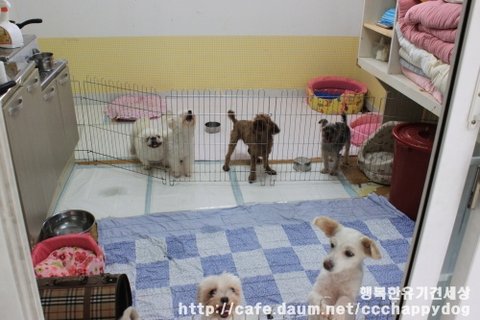 사랑터는 실내보호소라 입양가기전까지 산책하는것은