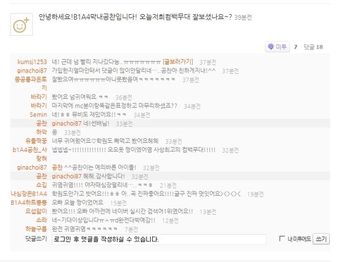 지나;가입한지얼마안돼서 댓글이 많이안달리네…..공찬아 친하게지내!^^