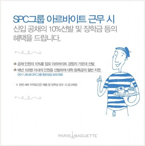spc그룹 신입공채때 파리바게뜨에서 아르바이트 한사람을 신입공채에서 10%를 뽑느다고 하네요