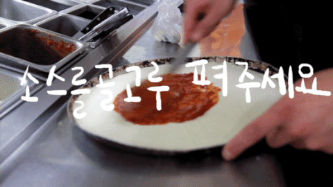 도우 끝까지 소스를 바르면 타는 경우가 있으니 1cm정도 남겨주세요