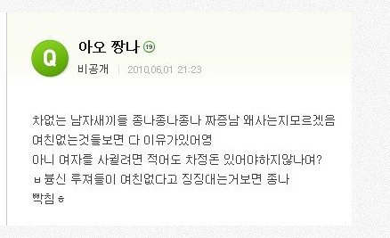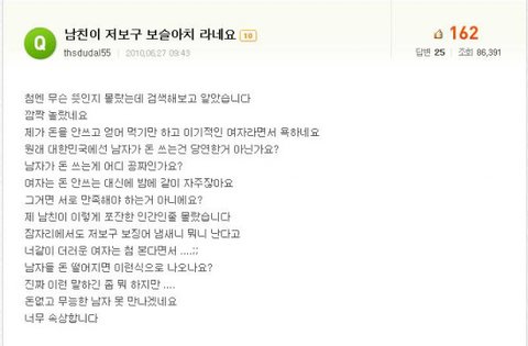 이어지는판에 썼으니까 혹시 들어왔다가 열받은 여자분들은 들어가시고 스트레스 푸세요