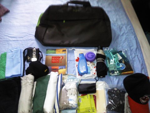 짐: 티셔츠 3벌, 바지 2벌, 속옷 2개, 양말 3개 - (옷은 요정도 챙겼고)