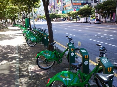 찜질방에서 부산가는 길에 본 대여 자전거들 올ㅋ 부산 좋당