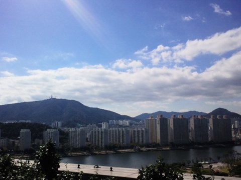 감싸듯이 멀리 보이는 멋진 빌딩들과 집인 것 같음!