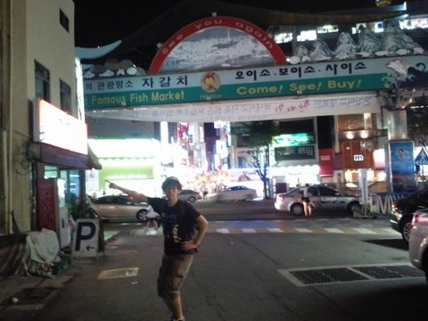 자갈치 시장 입갤! (피곤한건가? 자세가 영 별로임..)