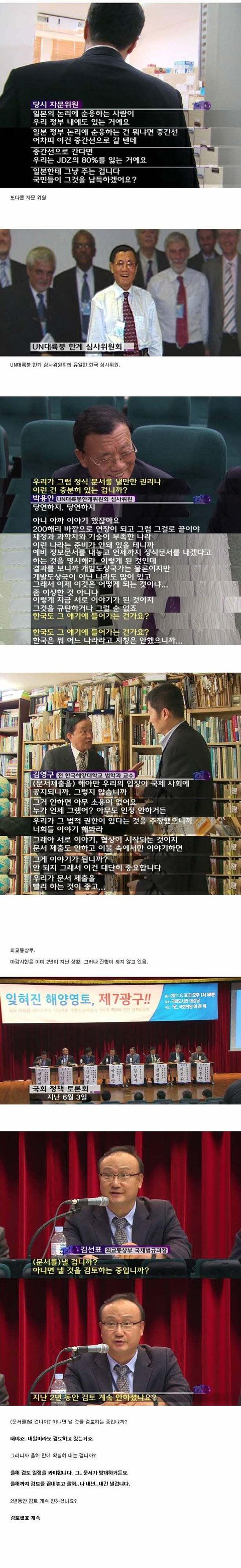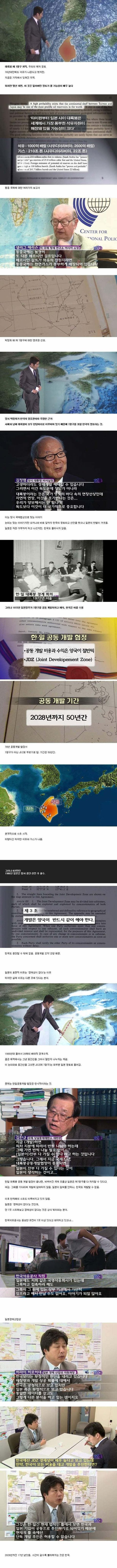(1978년 공동개발 협정서에 2028년까지 50년간 공동개발을 하기로) 반면 우리나라는 수십업의 연구비를 들이며 대륙붕 경계면에 대한 자료를 준비했음에도 불구하고 대륙붕 경계를 그어줄 중재위원회인 UN에 제출하지 않았습니다.