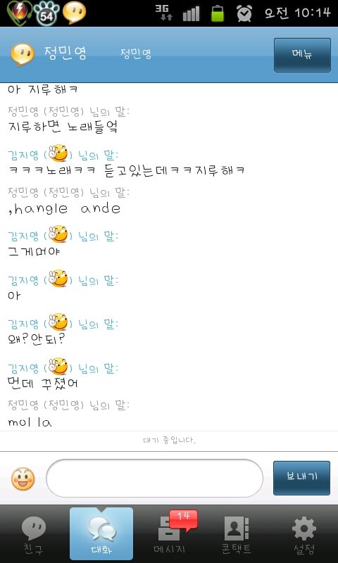 우리 남치니 랑 네이트온 대화를 하고 있었음 ㅋㅋㅋㅋ
