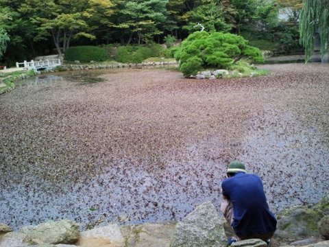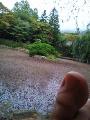 호수를 가만히 보면 주둥이만 봐도 엄청 큰 걸로 예상되는 잉어가 벌레를 먹으려는건지 뭔지