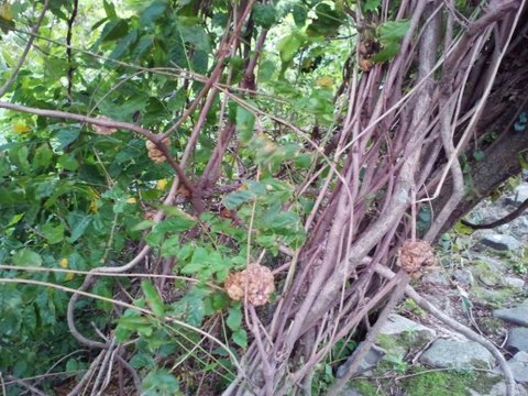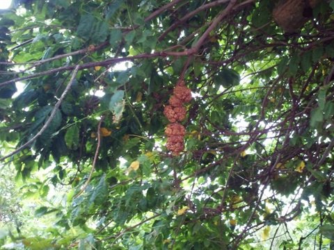 버스 정류장 뒤에 있는 호두같이 생긴 벌집들
