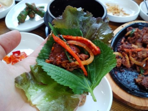 했는데 바로 앞에 있는 쌈밥집 아주머니가 나와서 여기서 먹고 가라고 하시길래