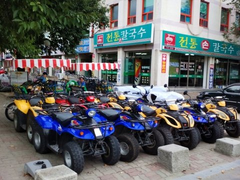 이 근방에는 자전거, 스쿠터, 4륜 오토바이등 대여하는 곳이 많음