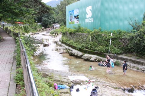 한 곳은 닭볶음탕이나 닭백숙 등을 파는 음식점을 끼고 있는 계곡이 있다. 또 한 곳은 주택가 사이에 있는 계곡이다. 두 곳은 모두 장단점이 있는데 음식점을 끼고 있는 계곡은 편한 것이 장점이다. 방이나 평상을 하나 잡고 그곳에 짐을 둔 후 마음껏 놀고 다시 돌아와서 밥을 먹고 다시 놀면 된다. 그러나 다소 비싸다. 닭백숙의 가격이 6만 원 정도 하니 보통 비싼 것은 아니다. 자릿값을 낸다고 생각하면 편하다.
