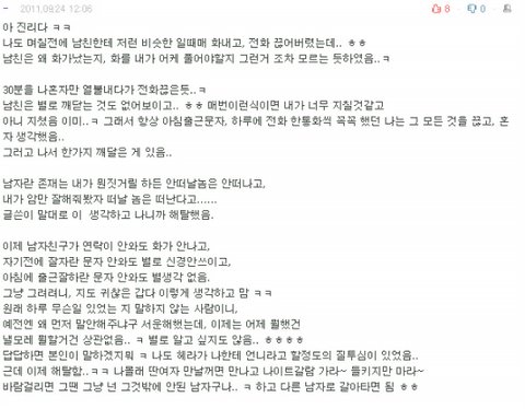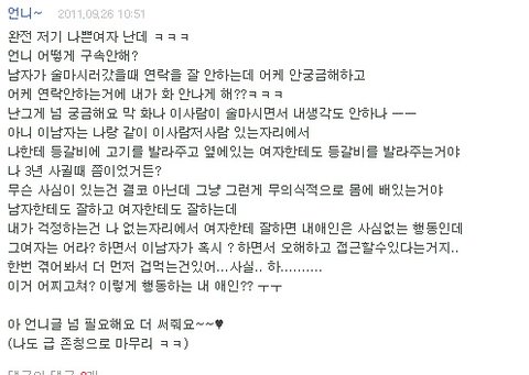 사실 알고보면 별 내용이 아니더라도, '오빠' 'ㅋㅋㅋㅋㅋ' '^^' 이런 정도만 들어가 있어도 신경쓰여.