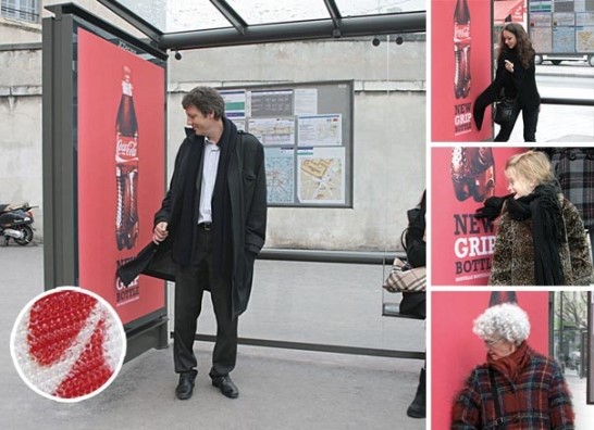 언제나 남다른 특이한 광고를 내놓고 있는 코카콜라가 설치한 프랑스 파리의 한 버스정류장입니다.