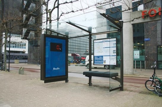버스 정류장 의자에 체중계를 설치하여 벽면에 큼지막하게 체중을 표시해 줍니다..