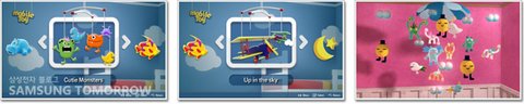 ‘모빌 토이’는 모빌 디자인에 있어, 아이들의 감성 발달에 유익하면서 덜 자극적인 컬러를 사용했는데요. 정확한 사물구분하진 못 하지만 동작과 소리에 민감한 아이들의 감성을 자극할 수 있도록 캐릭터 디자인에 주안점을 두었습니다. 아이들의 두상이 납작해지지 않도록 아이를 옆으로 누이는 엄마들 많죠? 모빌의 동작도 그에 따라 옆에서 보는 형태로 바꾸어 디자인했답니다.