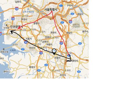 까만색 경로로 와도 똥줄 탈 판에 이 아저씨는 빨간색 경로로 오신다고^^