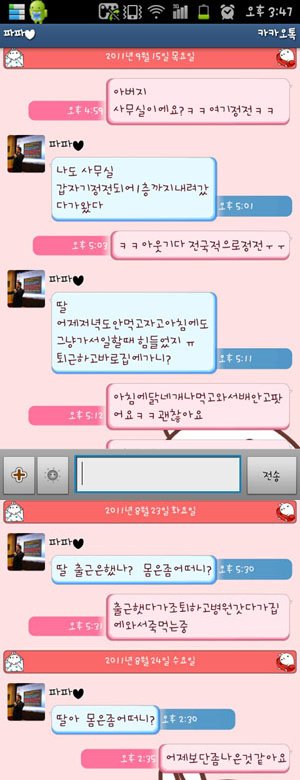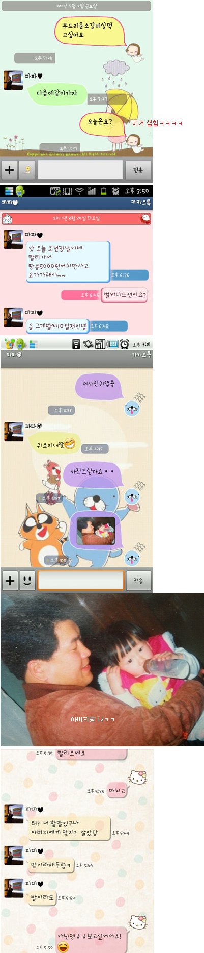 그래서 아버지랑 나랑 한 카톡 몇개 캡쳐해둔거 올림ㅋㅋㅋㅋㅋ