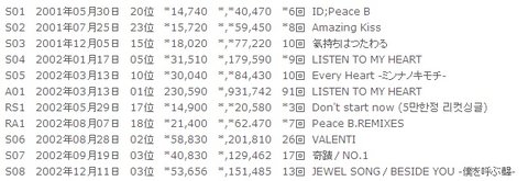 보아 오리콘 순위와 일본 판매량임!!!